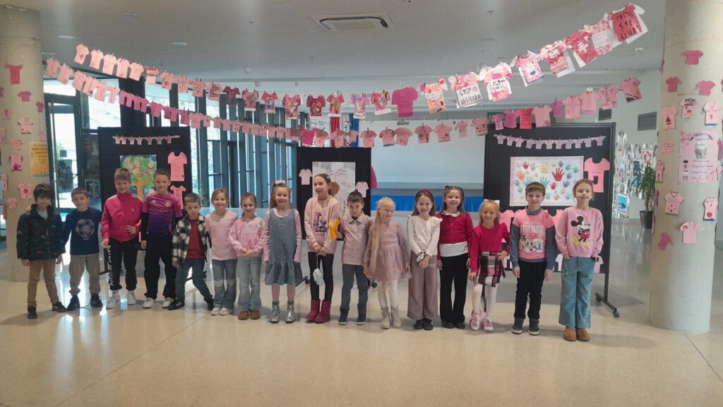 U našoj školi u srijedu (25. veljače) obilježen je Dan ružičastih majica – dan posvećen promicanju tolerancije, razumijevanja i nenasilja među djecom i mladima. Učenici i učitelji rado su se uključili obilježavanju toga dana te su simbolično odjenuli ružičaste majice, šaljući snažnu poruku zajedništva i podrške.