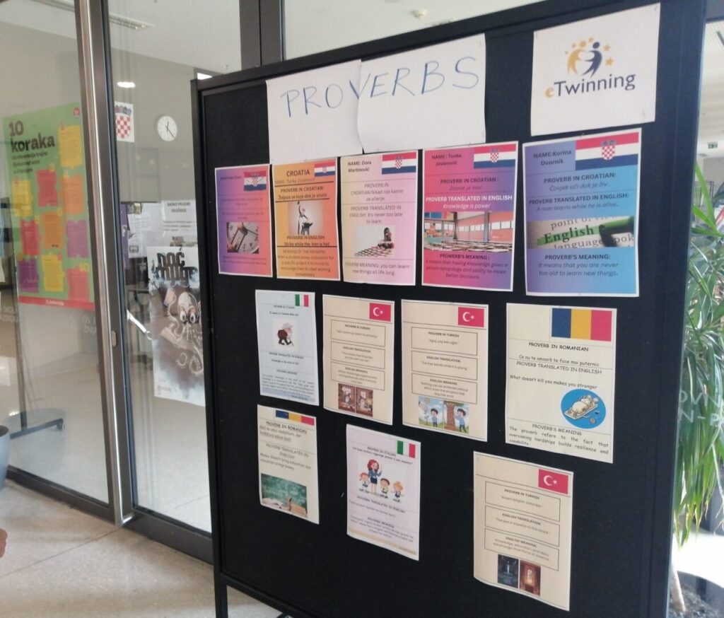 Učenice 7.d razreda Korina Dvornik i Tonka Jovanović te učenice 6.d Tara Žitko i Dora Martinović su uz podršku svih ostalih učenika u tim razredima sudjelovale u eTwinning projektu „Proverbs Across Cultures” (Poslovice kroz kulture) u kojem su proučavale hrvatske narodne poslovice te ih sistematizirale prema zadatku i temi predstavivši svoju državu kulturološki i jezično. Naučili su koristiti nove digitalne alate, zajedničkim radom dolazili do rješenja, izradili digitalnu knjigu o poslovicama. Istraživali su ne samo općenite poslovice, već i hrvatske narodne poslovice te povezivali sličnosti s poslovicama iz drugih država koje su sudjelovale u projektu.