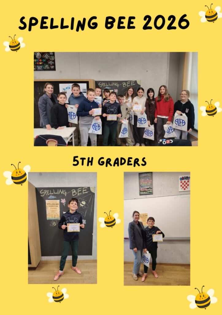 Pobjednik natjecanja Spelling Bee 2026 je učenik 5. d Diego Banić, 2. mjesto osvojio je Anton Bogdan (5.a), a na 3. mjestu je Klara Alar (5.a).